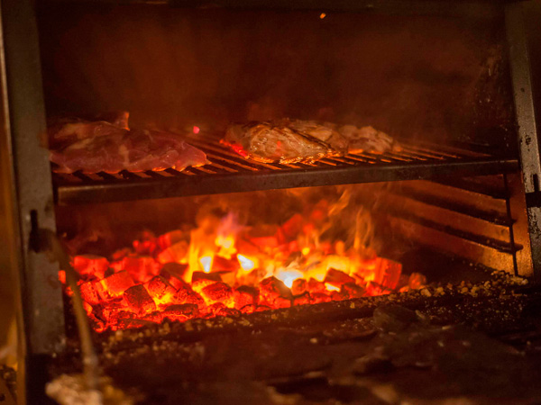 La oferta gastronómica que dispone este abrasador es amplia, sobre todo en carnes a la brasa de ternera añoja y cerdo ibérico de crianza propia que proviene directamente desde el campo a la parrilla, como por ejemplo el magret de ternera, la parrillada Abrasador o el entrecot de ibérico con aroma de monte.