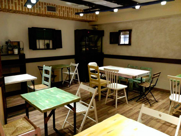 Salón comedor, mesas altas para tapear, espacio infantil y terraza exterior cubierta.